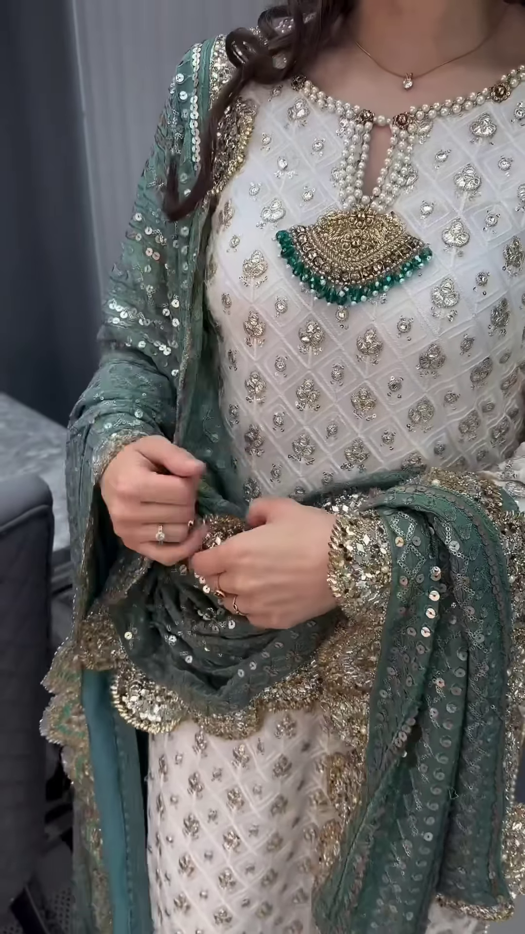 white heavy kurta set with handwork